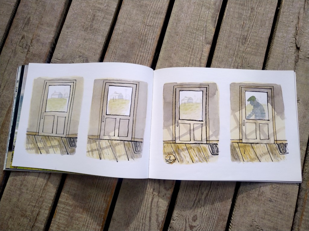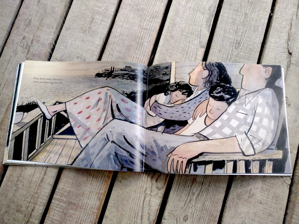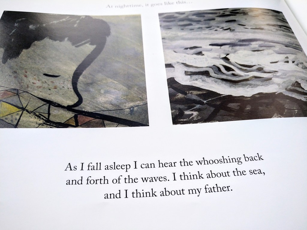 In the book, large spreads with a black world of a coal mine contrast with brightly lit daily life in a town by the glittering sea. It is almost impossible to imagine someone digging deep down under it, but not for the boy. Light emanates from the fabulous illustrations by Sydney Smith. Look!