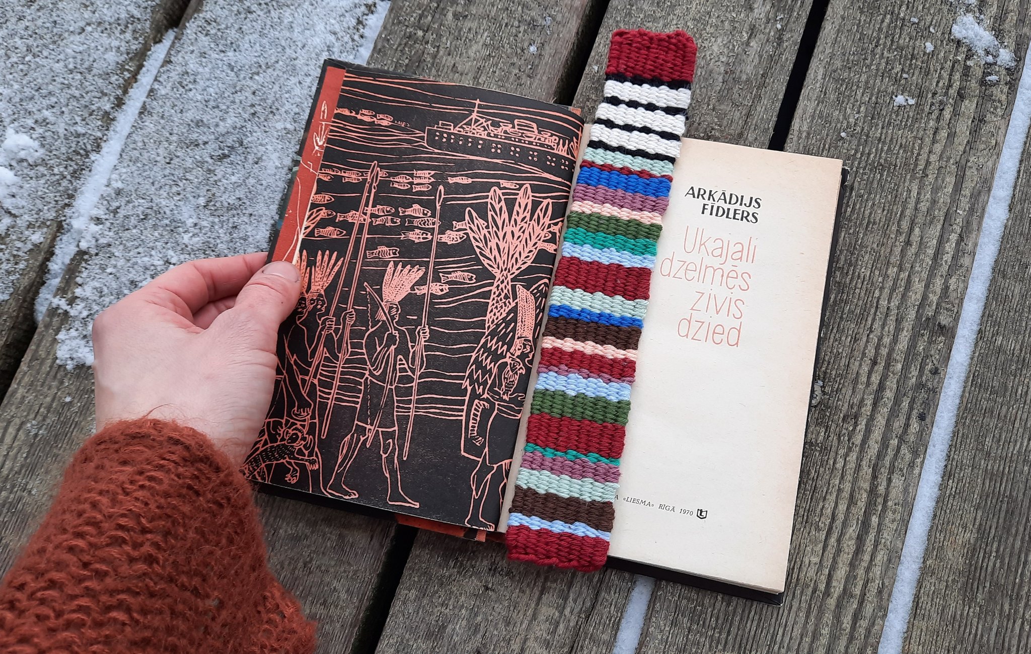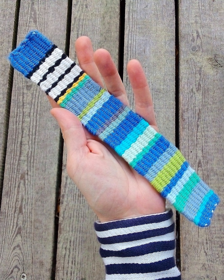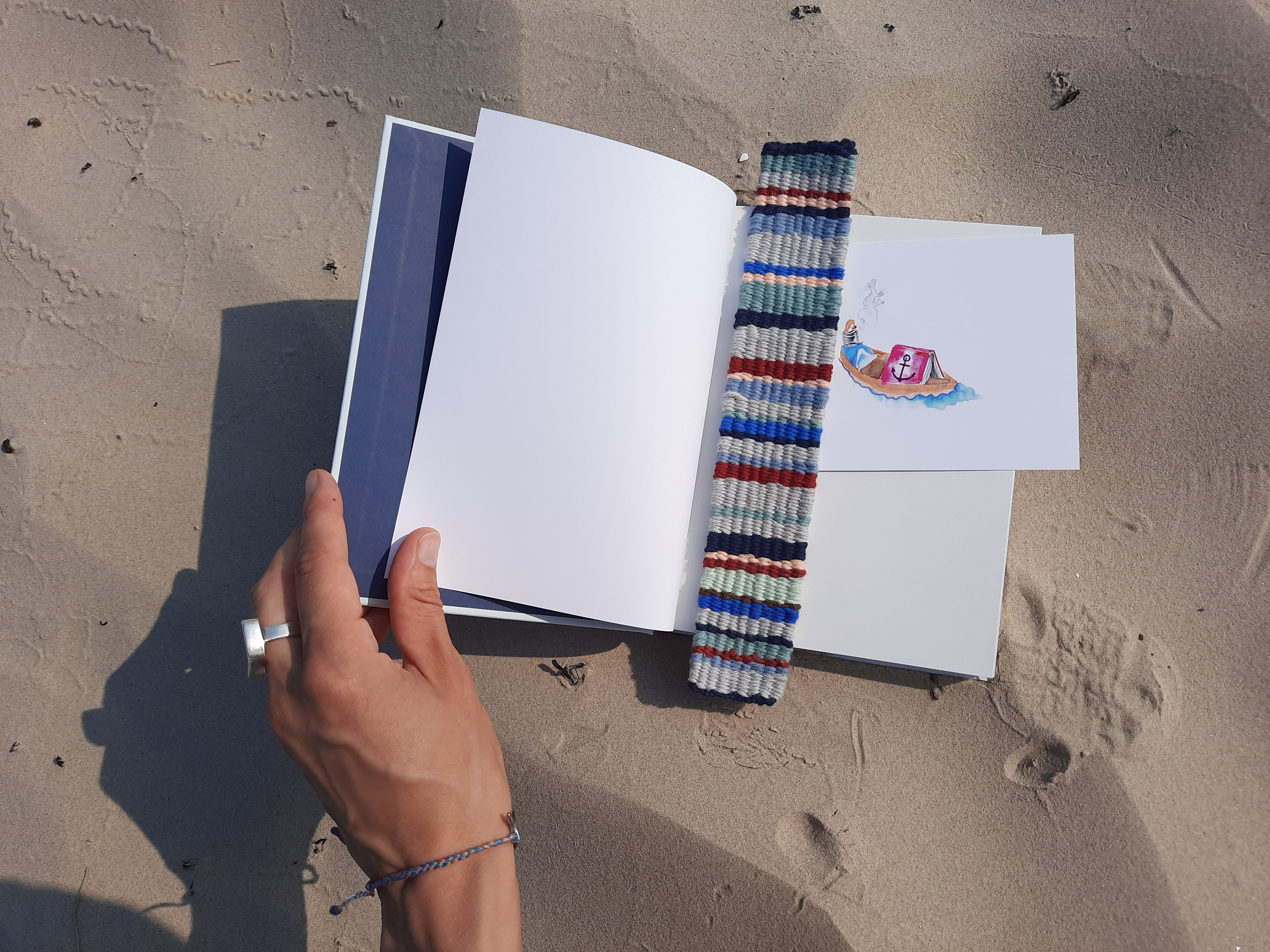 Sea Library is a dream world I have created in our old wooden house, standing for a century on a dune peninsula between river and sea. For three years the doors of the library have been wide open for books about seas and curious readers to come and go. To support what I do, I weave. If you will buy a woven bookmark, you can be sure that a new book will be bought and added to the unique watery collection. Sold postcards give me a chance to pay for the post so I could send the borrowed books to those who cannot visit. Let’s help the Sea Library to live long and strong!