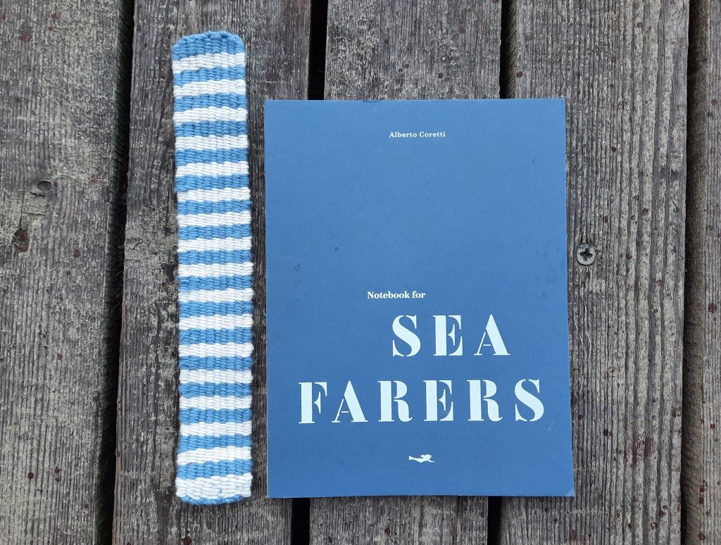 A striped Sailors bookmark is inspired by Alberto Coretti’s “Notebook for Sea Farers”.