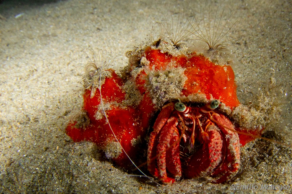 A photogenic hermit crab crawling around the Mediterranean seabed under biospheres of the Nemo’s Garden. “It is fun to see crabs and other sea life moving around the shelves where crops are growing.” Photo by Emilio Mancuso for Ocean Reef Group. Nemo’s Garden by OCEAN REEF.