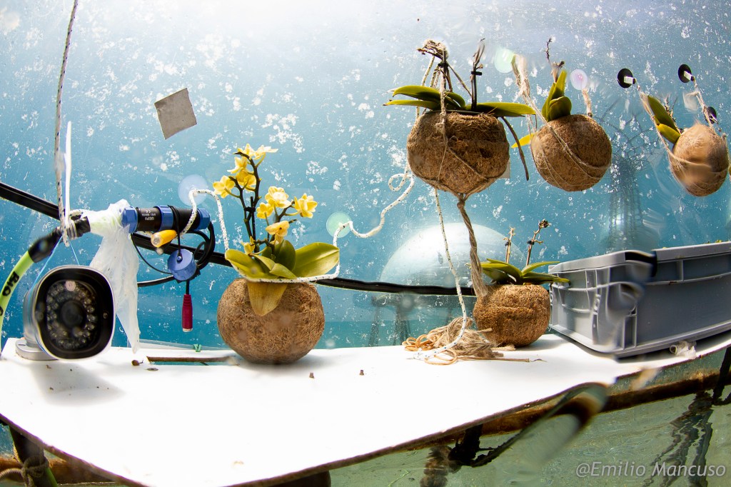 Orchids blooming under the Mediterranean Sea. In Nemo’s Garden there are also basil, lettuce, cabbage and strawberries. Photo by Emilio Mancuso for Ocean Reef Group. Nemo’s Garden by OCEAN REEF.