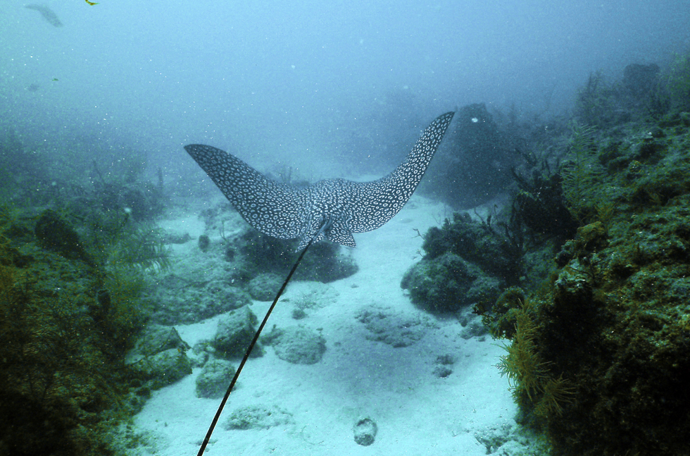 Lots of fun things happened and some uncomfortable ones as well. But I want to share something unusual. We had spotted eagle rays which are normally traveling animals. They are transients. But they stayed around the Aquarius habitat for the full 31 days. Every day we would see them. They would come, observe us, ‘fly’ around us, they would feed in the area, etc. But they were especially attracted to the activities we were doing. That is very unusual, I have never seen that before. There was one time when after a few weeks of them being used to us, we stopped paying attention because we had to do our work. So they would get closer and closer and eventually one of the spotted eagle rays would come and hit my helmet ever so often when I wasn’t looking at them. It feels like they were getting jealous that we weren’t paying attention to them. Things like this happen when you spend enough time underwater. Amazing experience.