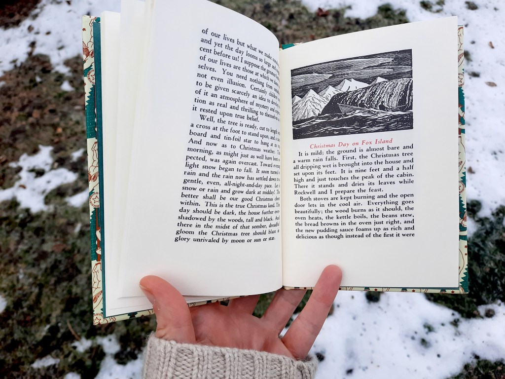 “A Northern Christmas” is a lovely little book with vibrating illustrations by Rockwell Kent. I loved to read and re-read it this Christmas and imagine myself being out there on a wild island, cleaning the cabin and bringing a Christmas tree inside, lighting up the candles.