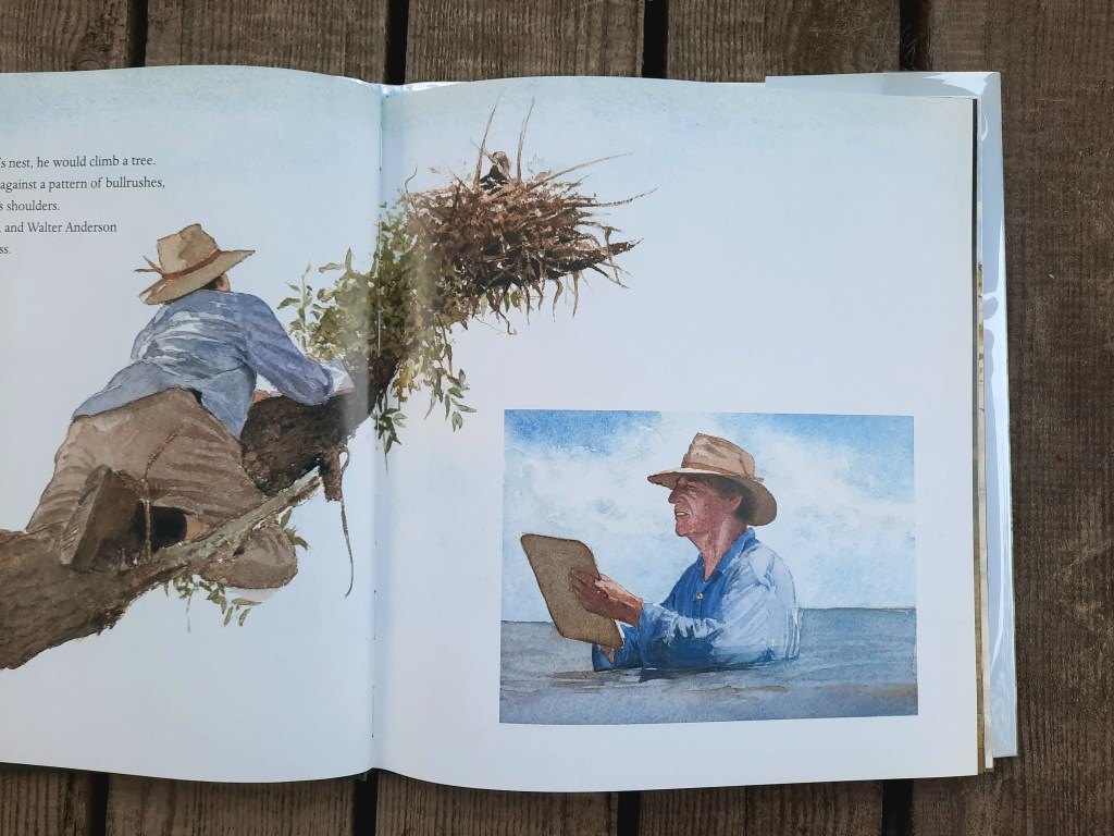 The illustrator E. B. Lewis has dedicated this book to the victims of Hurricane Kathryn (August 29, 2005). One of the victims was much of the legacy of Anderson’s family, which was taken out to sea or flooded. Nevertheless, a lot has been repaired, rebuilt, and healed. “For many, Walter Anderson’s work speaks fo the hope and renewal to be found in nature,” writes Hester Bass, “the interconnectedness of all life, and the importance of art in our lives. Such a message is eternal and will survive any storm, just like Horn Island.”