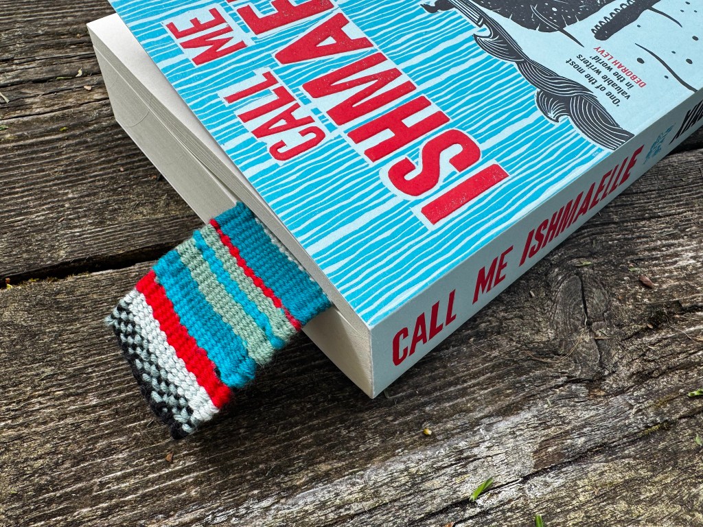 This particular bookmark is inspired by the striking cover of Call Me Ishmaelle (2025) by Xiaolu Guo. The palette of the cover is all there—inky black, bold red, sky and wave-blues. It’s a story in stripes. And it’s more than just a bookmark. It’s a tide that brings new books to the shore.