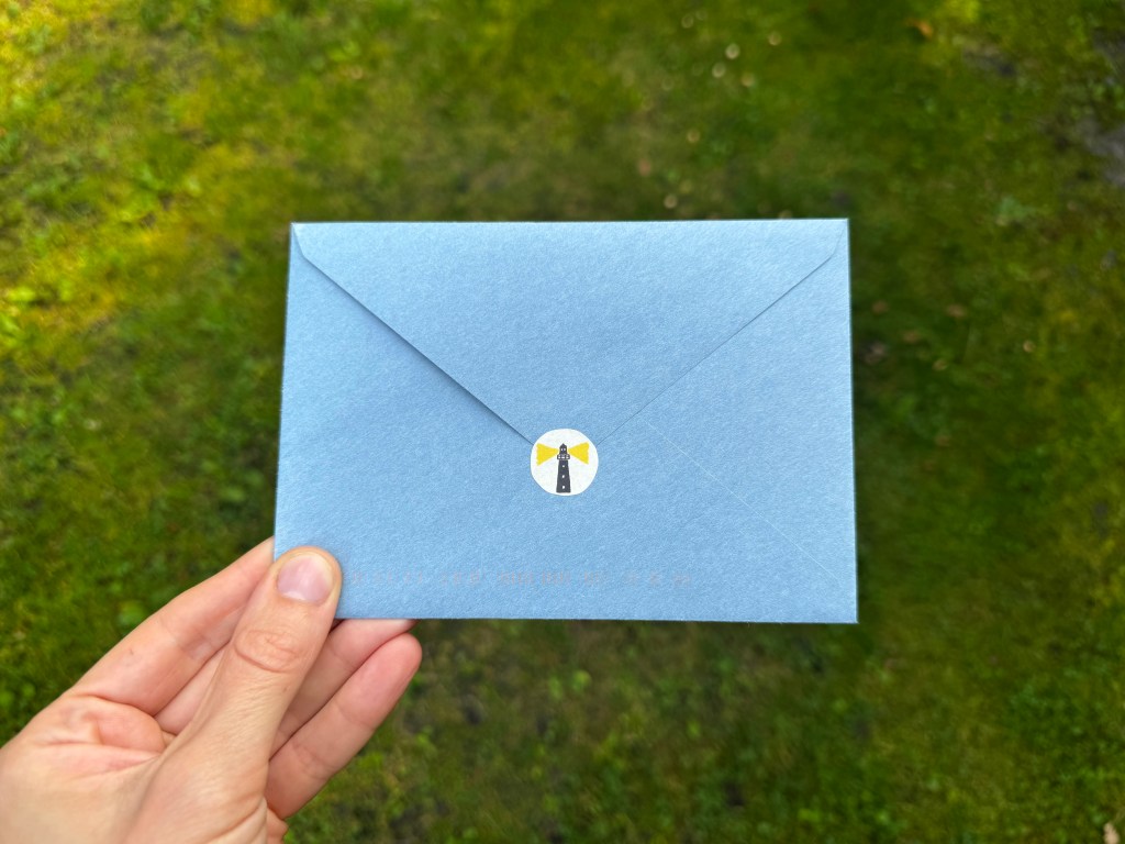And one more small miracle: yesterday I received a new Letter to the Sea. On its back was a lighthouse sticker – a quiet companion to the brighter beam now shining over the Sea Library. Do you follow sea-library.com and the letters that arrive almost every Wednesday? This one carried a Blue Dragon from Montreal, a water-creature that crossed continents to land in my hands.