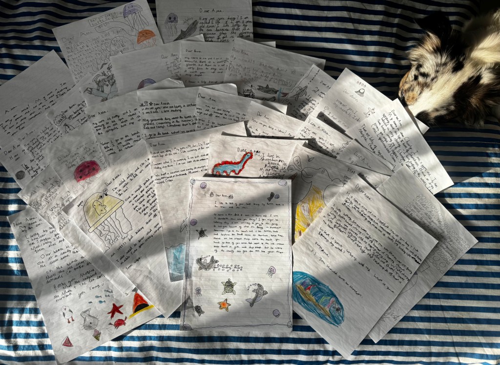 A very special thanks to Jackie Verrall for spreading the word, and to the children’s teacher, Adam Joseph, for steering the ship of letters toward the Sea Library!